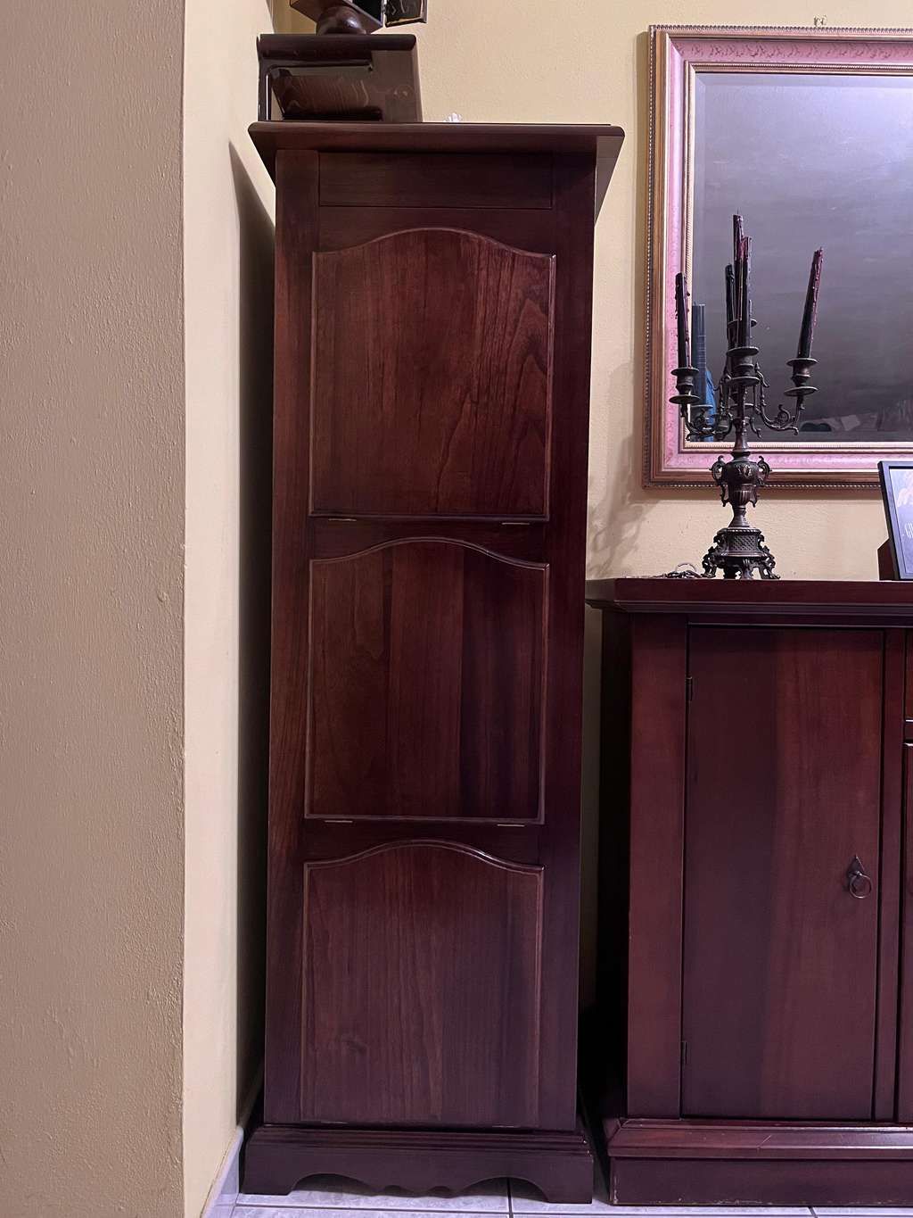 SCARPIERA SINGOLA IN LEGNO TINTA NOCE ARTE POVERA L.53 P.43 H.155