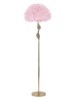 Piantana in metallo dorato con elegante decorazione morbida e sinuosa completa di paralume composto da piume.
