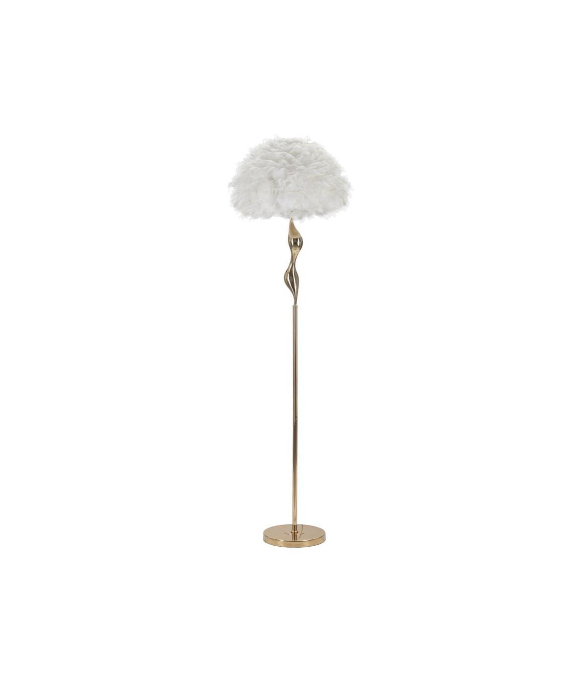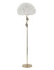 Piantana in metallo dorato con elegante decorazione morbida e sinuosa completa di paralume composto da piume.