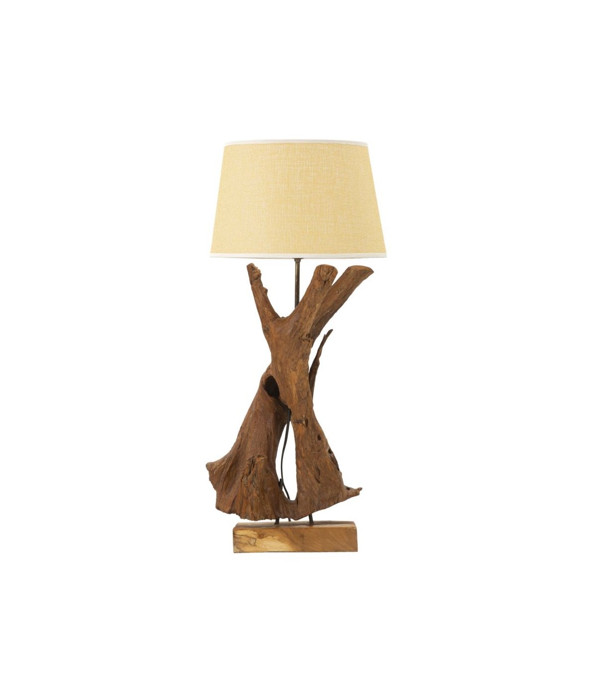 Lampada in teak riciclato, realizzata a mano da un pezzo di tronco. Ogni lampada è unica, con venature che raccontano la storia del legno, creando un'atmosfera accogliente e naturale.