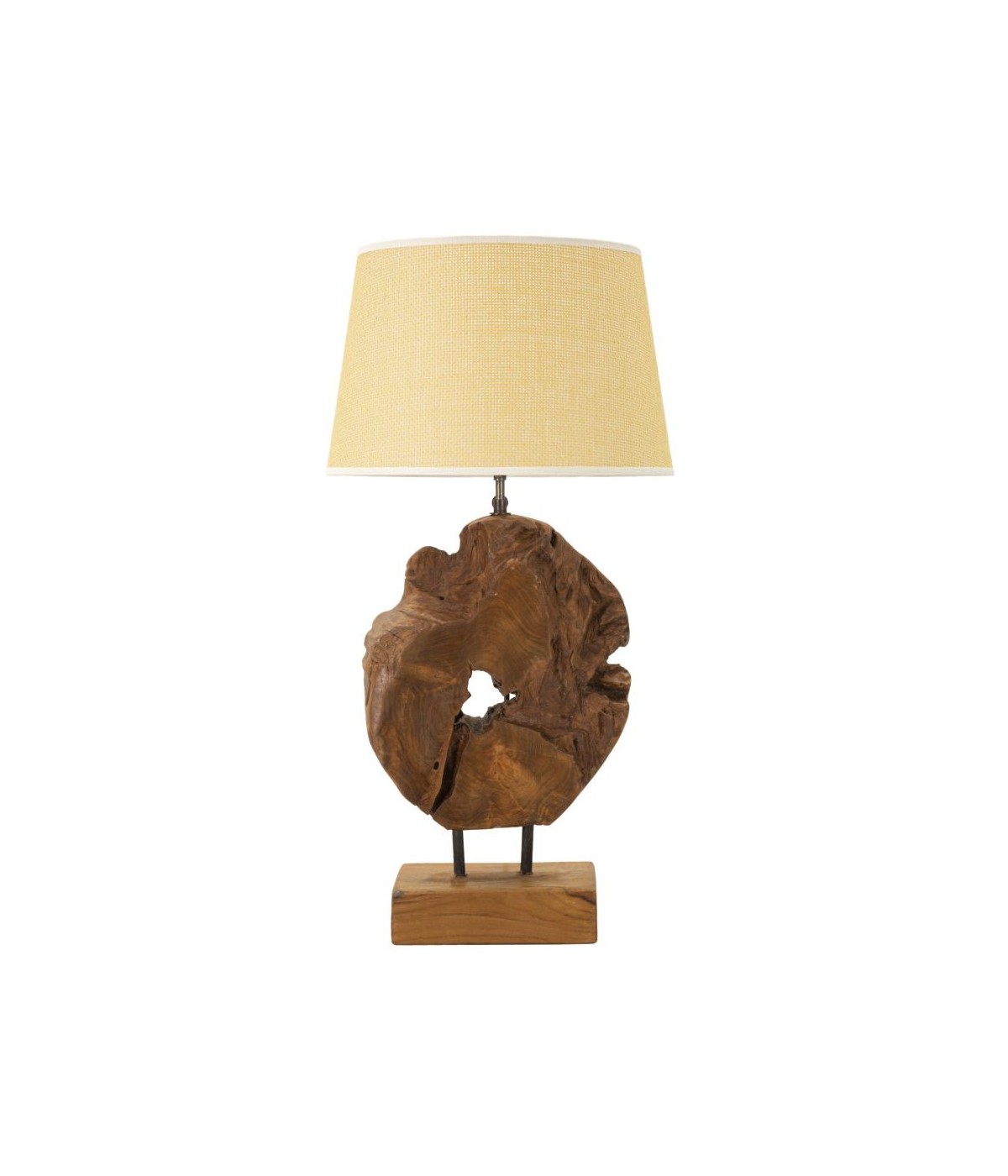 Lampada in teak riciclato, realizzata a mano da un pezzo di tronco. Ogni lampada è unica, con venature che raccontano la storia del legno, creando un'atmosfera accogliente e naturale.