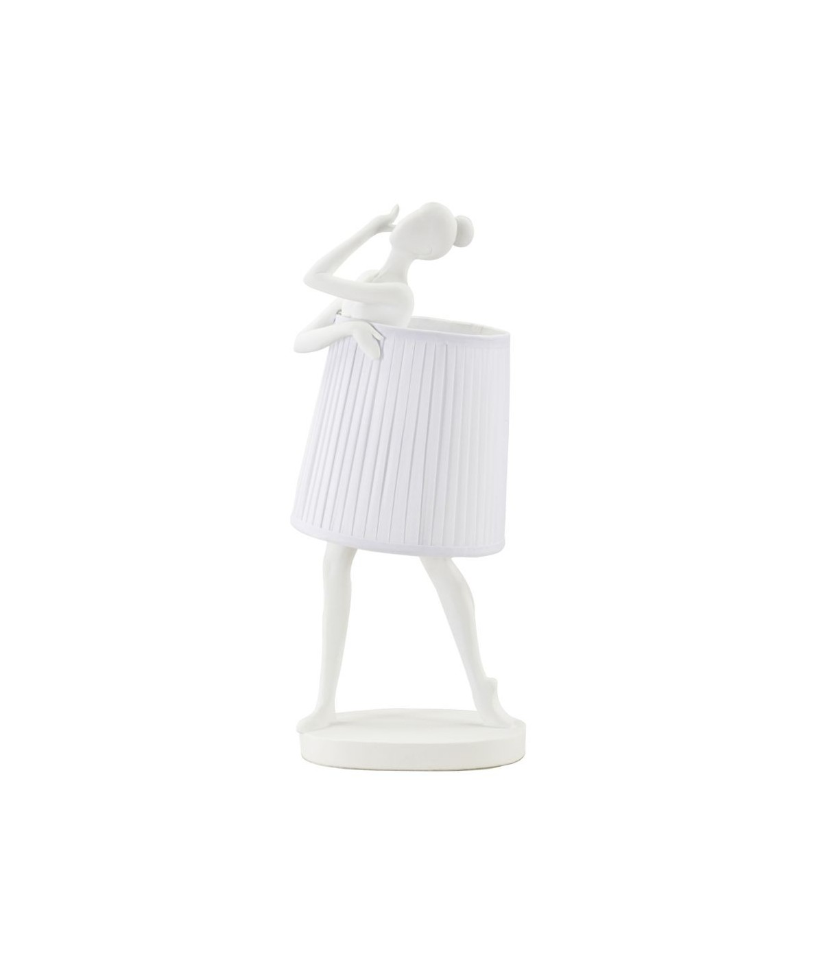 Lampada da tavolo in resina a forma di ballerina. Completa di paralume in tessuto bianco.