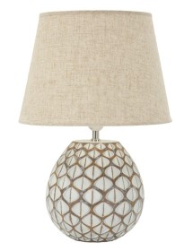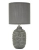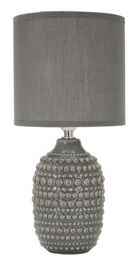 Lampada da comodino con base grigia e puntini in rilievo, ideale per un tocco di eleganza e stile moderno in camera da letto.