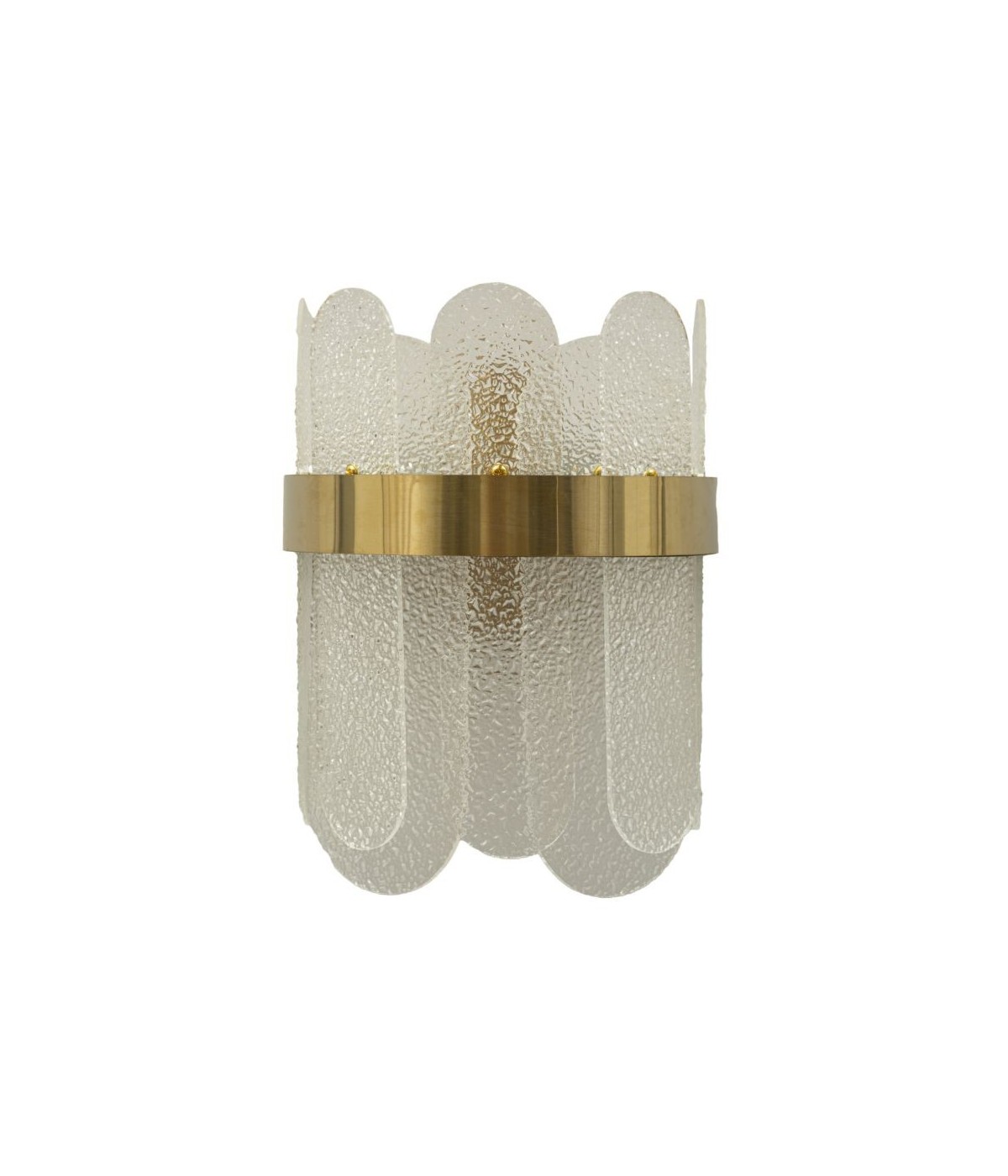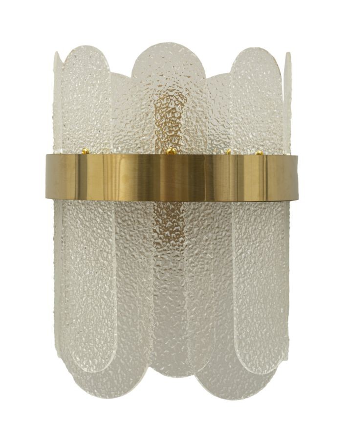 Lampada da parete con 2 punti luce in vetro satinato con elegante fascia in metallo dorato.