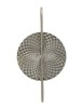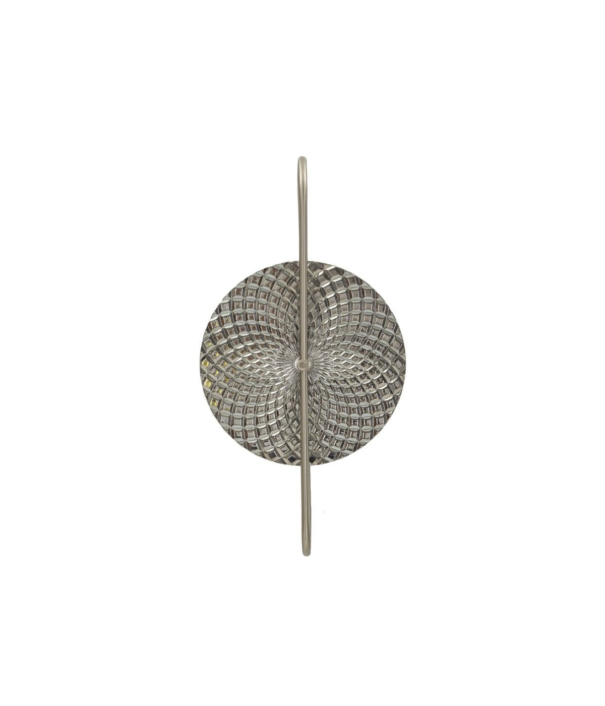 Lampada da parete con 2 punti luce in metallo argentato e vetro con eleganti elementi decorativi in rilievo dalla forma circolare.