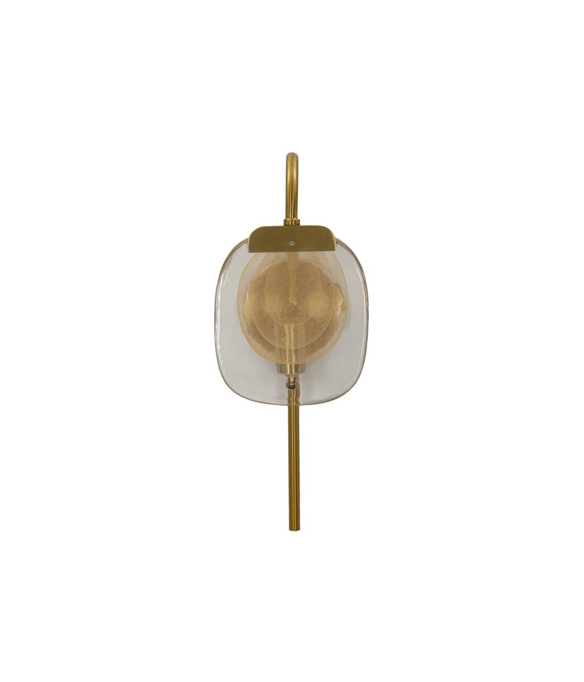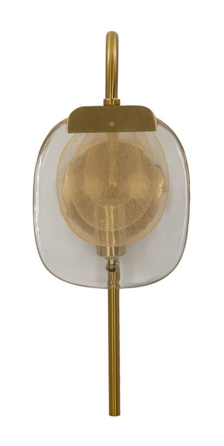 Lampada da parete in metallo dorato con vetro elegantemente decorato con cerchi concentrici.