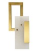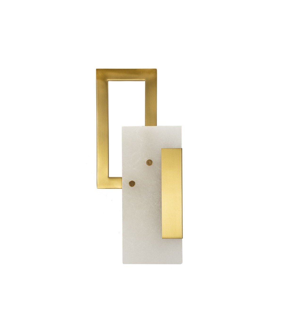Lampada da parete in metallo dorato e vetro satinato dalla forma geometrica e regolare.