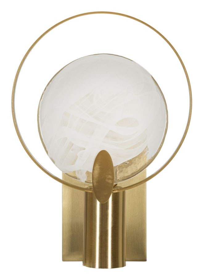 Lampada da parete in metallo dorato e vetro con effetto fumé dal design geometrico semplice ed accattivante.