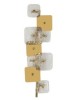 Lampada da parete con 5 punti luci composta da figure quadrate in metallo dorato e vetro dalla particolare lavorazione in rilievo.