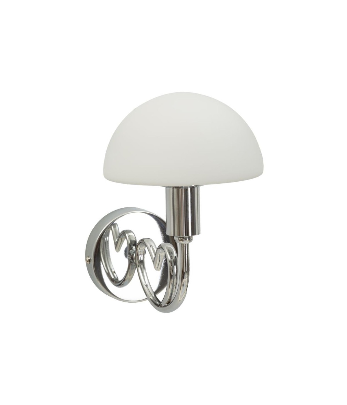 Lampada da parete in metallo argentato con elegante cuore e completa di paralume in vetro bianco opaco.