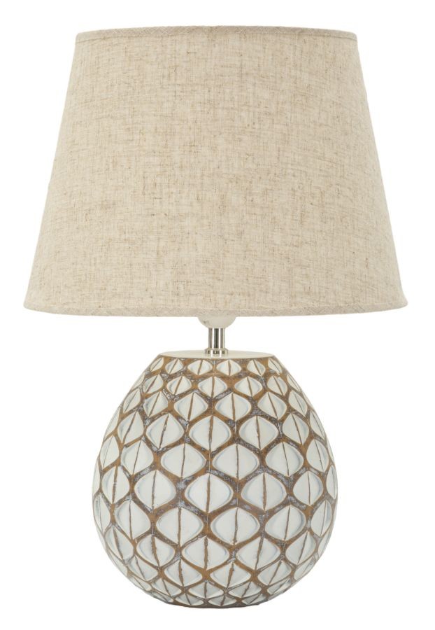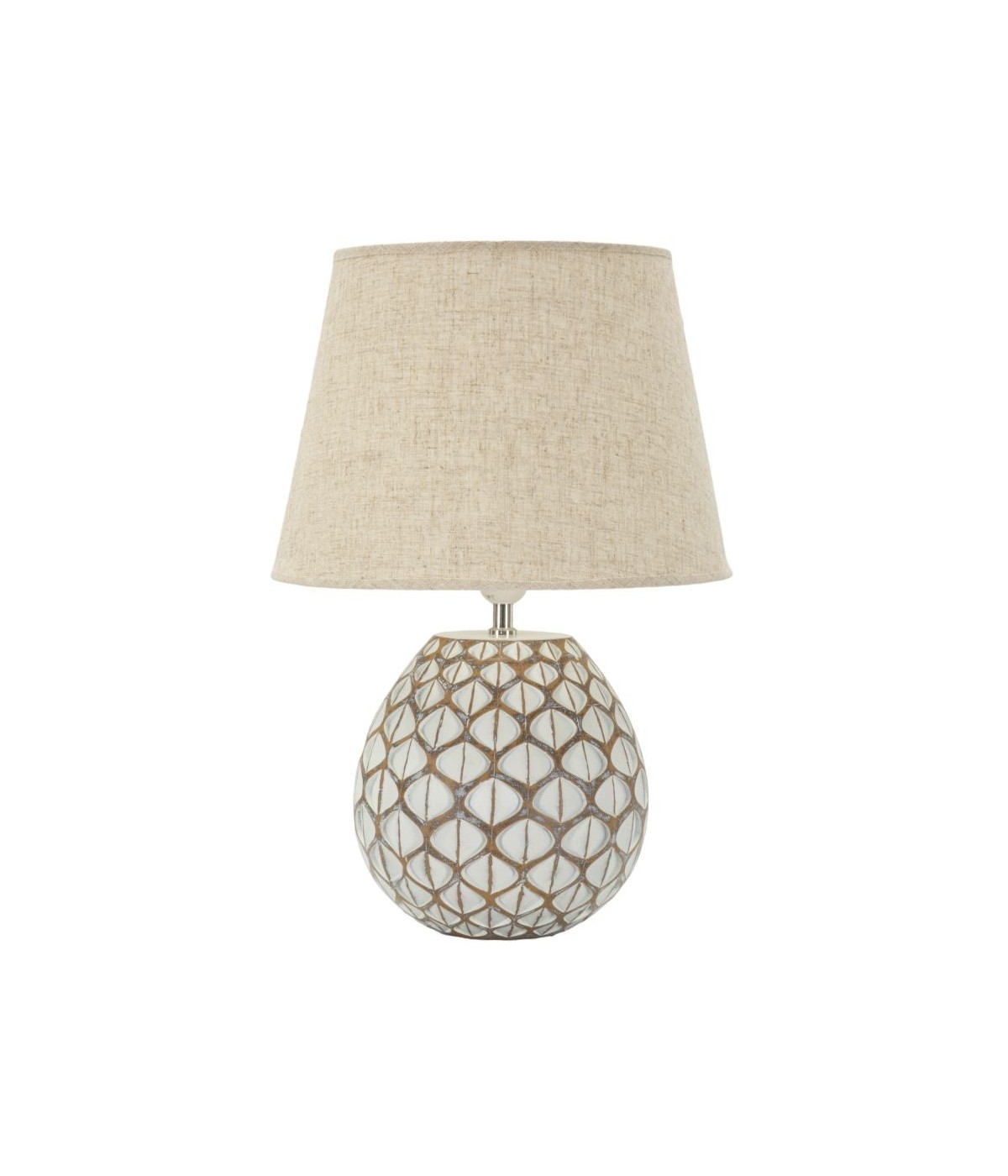 La Lampada da Tavolo Resina Tibet combina un design sofisticato e dettagli artigianali. La base dalla texture geometrica in resina crea un effetto elegante e contemporaneo, mentre il paralume in tessuto neutro diffonde una luce calda e accogliente, perfetta per ambienti moderni e raffinati.