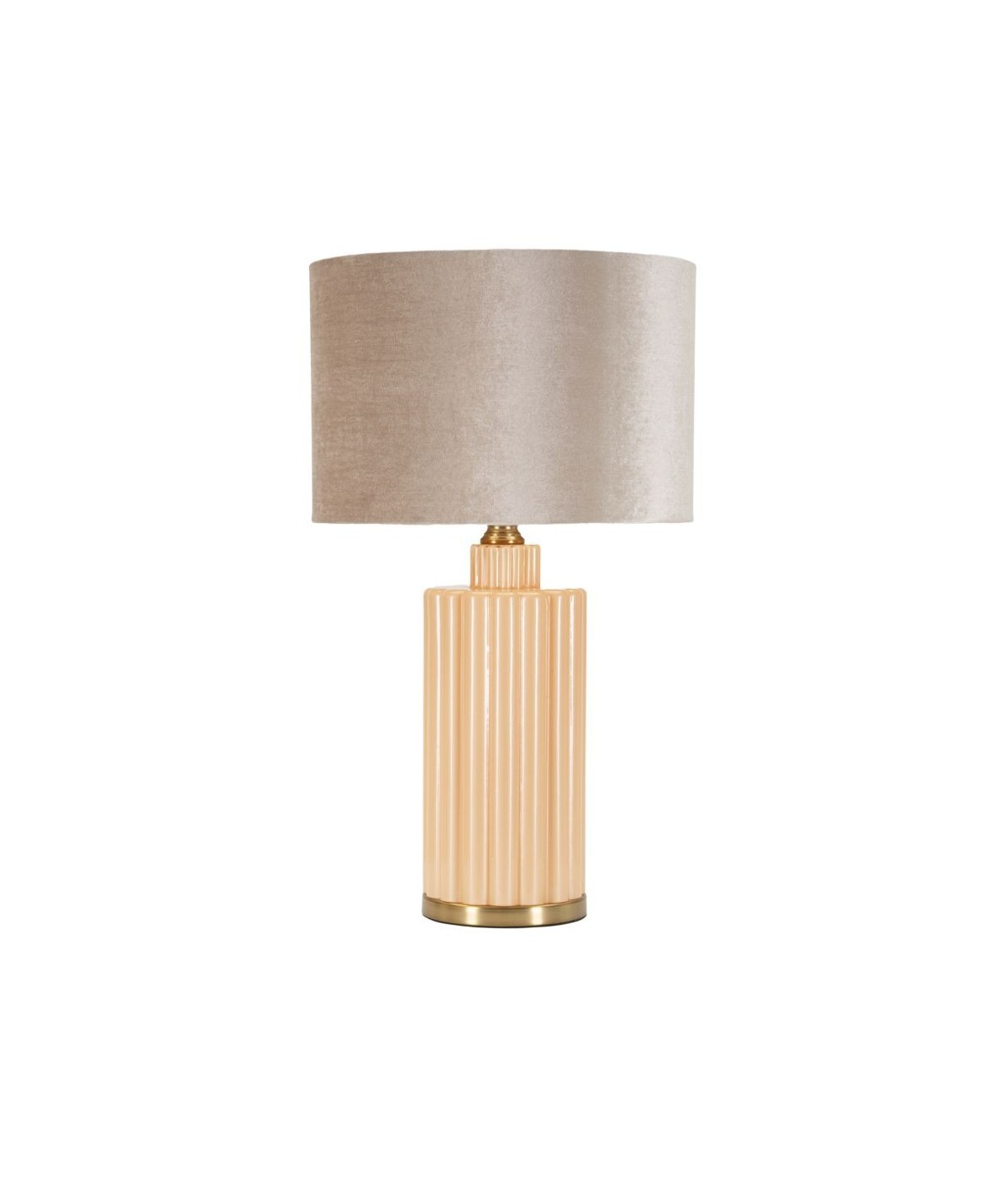 La Lampada da Tavolo Perly esprime un'eleganza raffinata con la sua base cilindrica scanalata in finitura perlata e dettagli dorati. Il paralume neutro completa il design sofisticato, perfetto per creare un'illuminazione calda e accogliente in ambienti glamour e moderni.