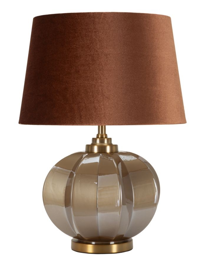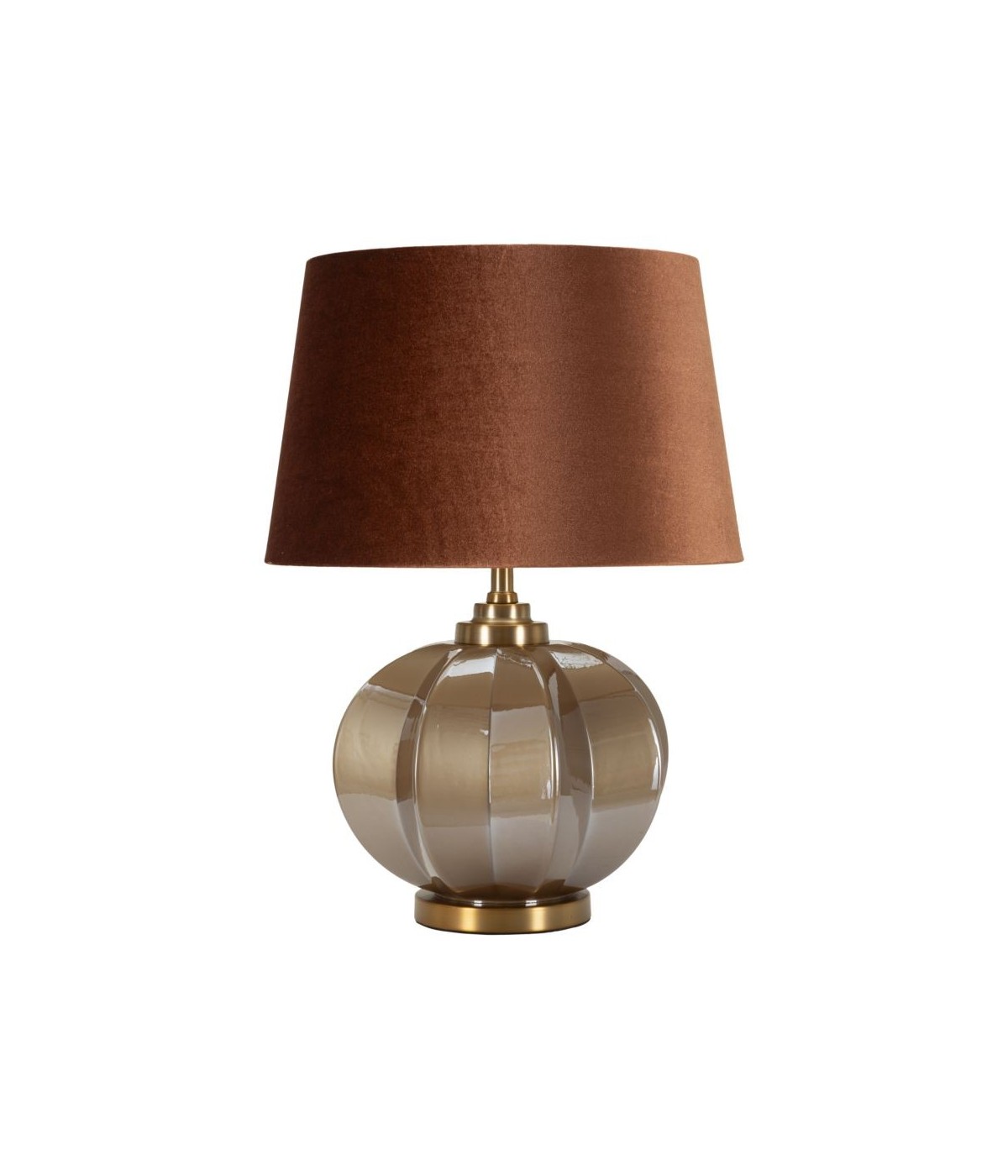 La Lampada da Tavolo Praga è un'elegante fusione di stile classico e moderno. La base sferica in vetro lavorato, arricchita da dettagli dorati, si abbina perfettamente al paralume marrone, creando un'illuminazione calda e sofisticata, ideale per ambienti glamour e raffinati.