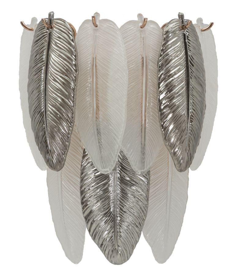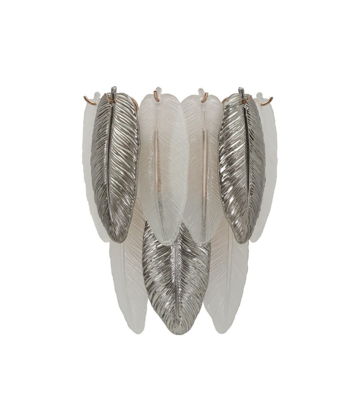 Un intreccio di foglie luminose che evocano la delicatezza della natura: questa lampada da muro unisce eleganza e freschezza in un gioco di trasparenze sofisticate.