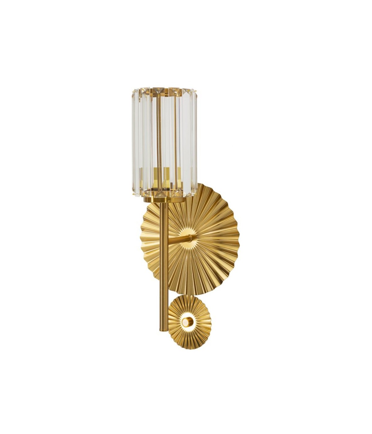 Tirana sorprende con la sua forma dinamica e il contrasto tra vetro e ottone: un complemento deciso e sofisticato, dal forte impatto visivo.