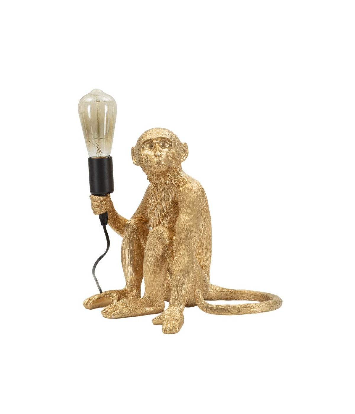 In finitura oro, la Monkey seduta diventa una piccola scultura luminosa dal fascino eccentrico e lussuoso, ideale per ambienti glamour.