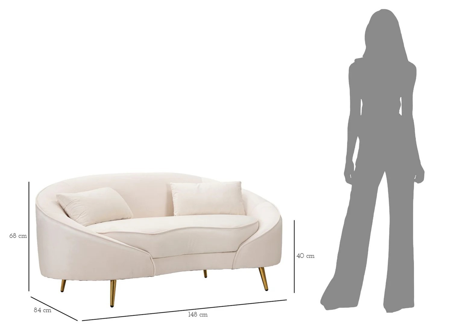 DIVANETTO 2 POSTI OSLO C/CUSCINI CREMA CM 148X84X68