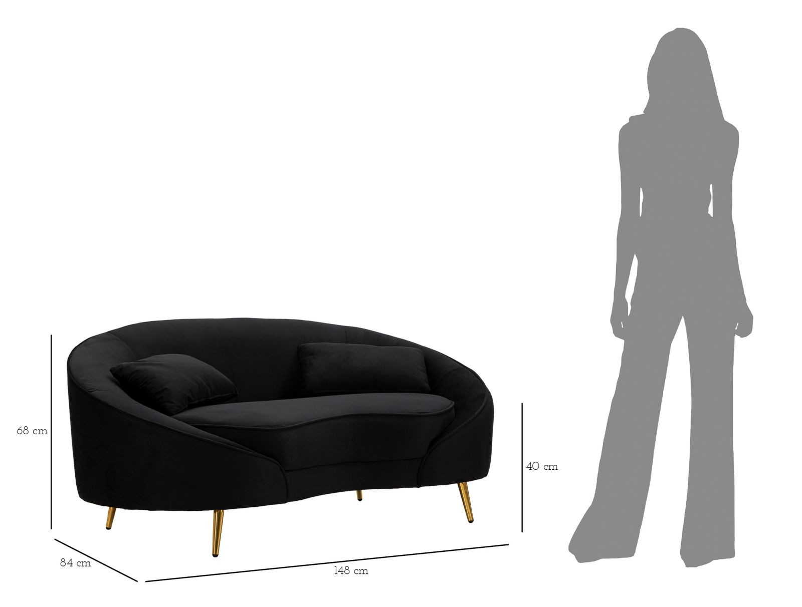 Divanetto 2 posti oslo c/cuscini nero cm 148x84x68