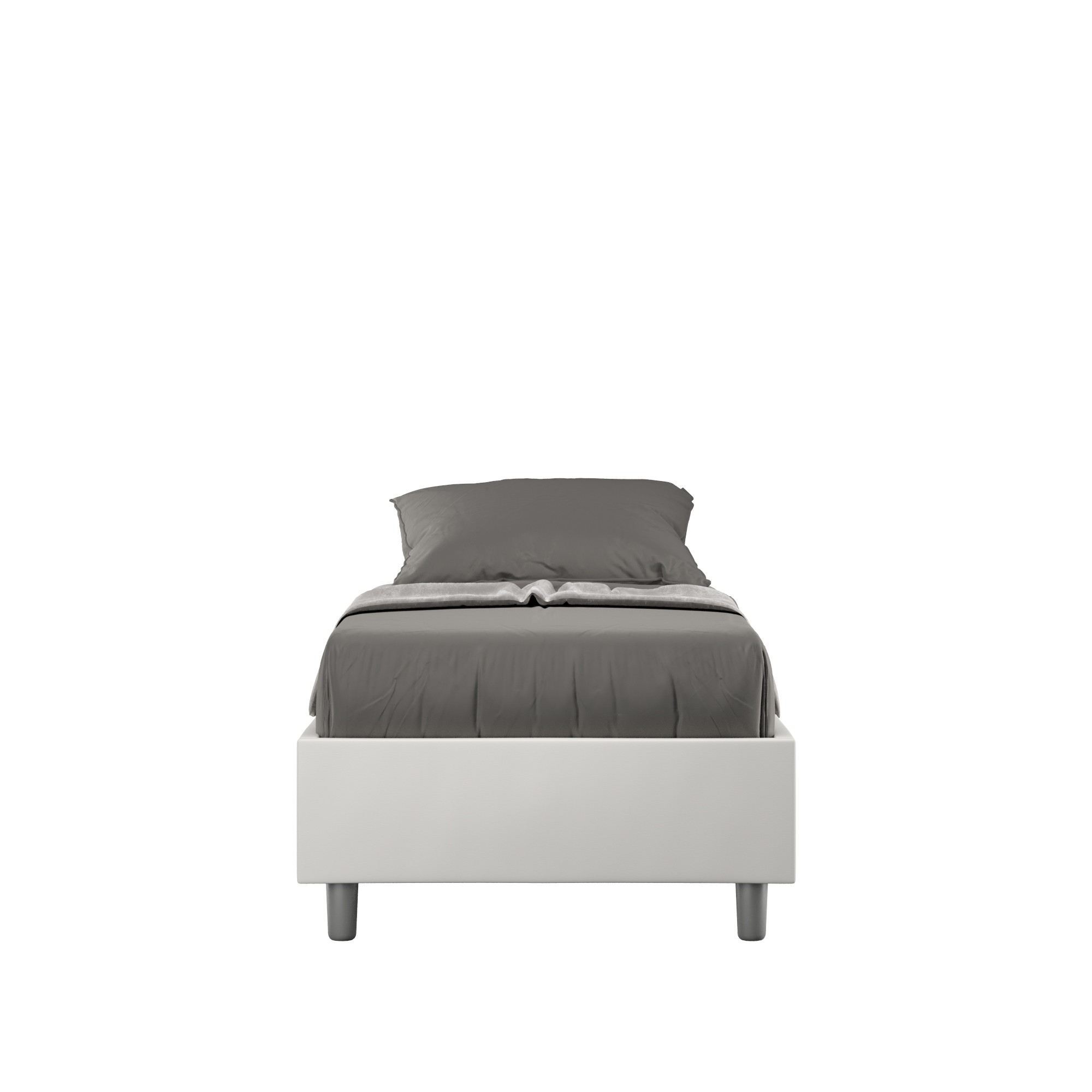 Letto singolo 80x200 senza testiera Azelia con giroletto imbottito, rivestimento in similpelle, particolarmente versatile e facilmente abbinabile a qualsiasi stile di arredamento.