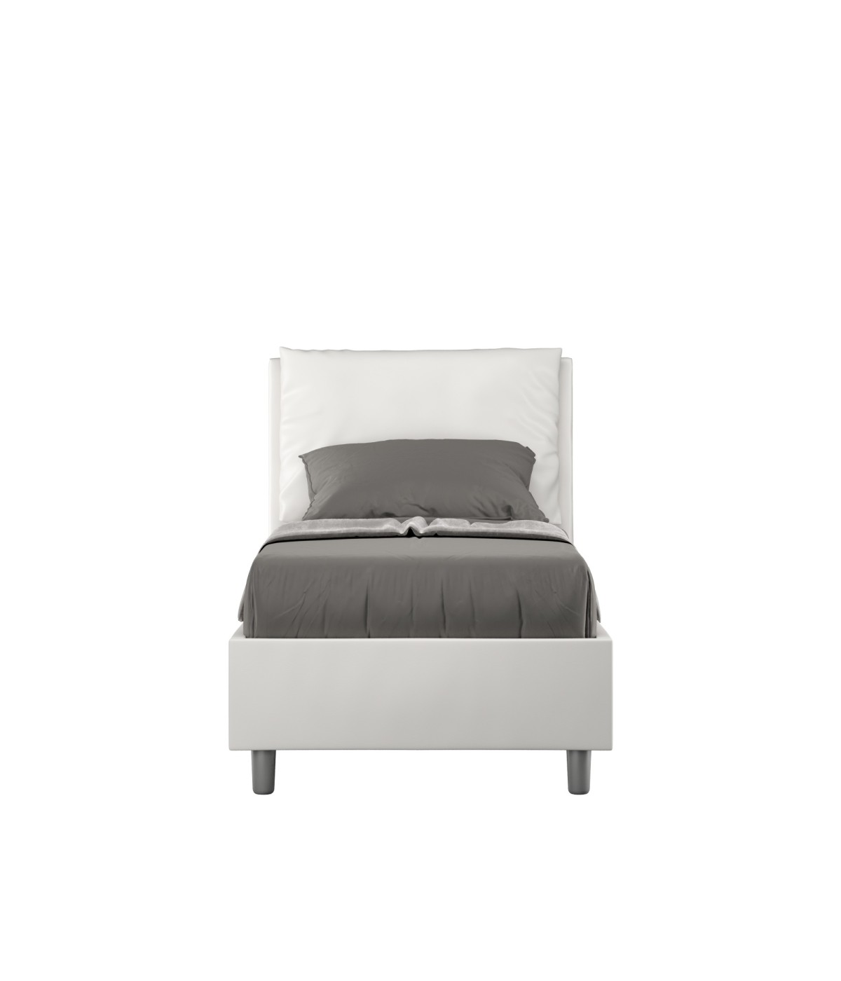 Letto singolo 80x200 Antea con testata e giroletto imbottiti, rivestimento in similpelle, particolarmente versatile e facilmente abbinabile a qualsiasi stile di arredamento.