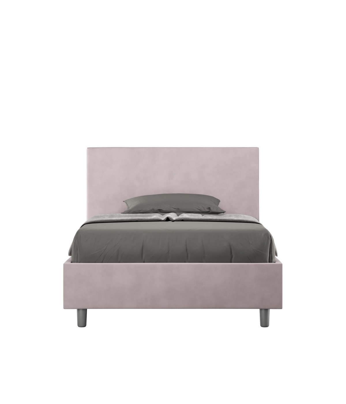 Letto singolo 100x210 Adele con testata e giroletto imbottiti, rivestimento in microfibra, particolarmente versatile e facilmente abbinabile a qualsiasi stile di arredamento.