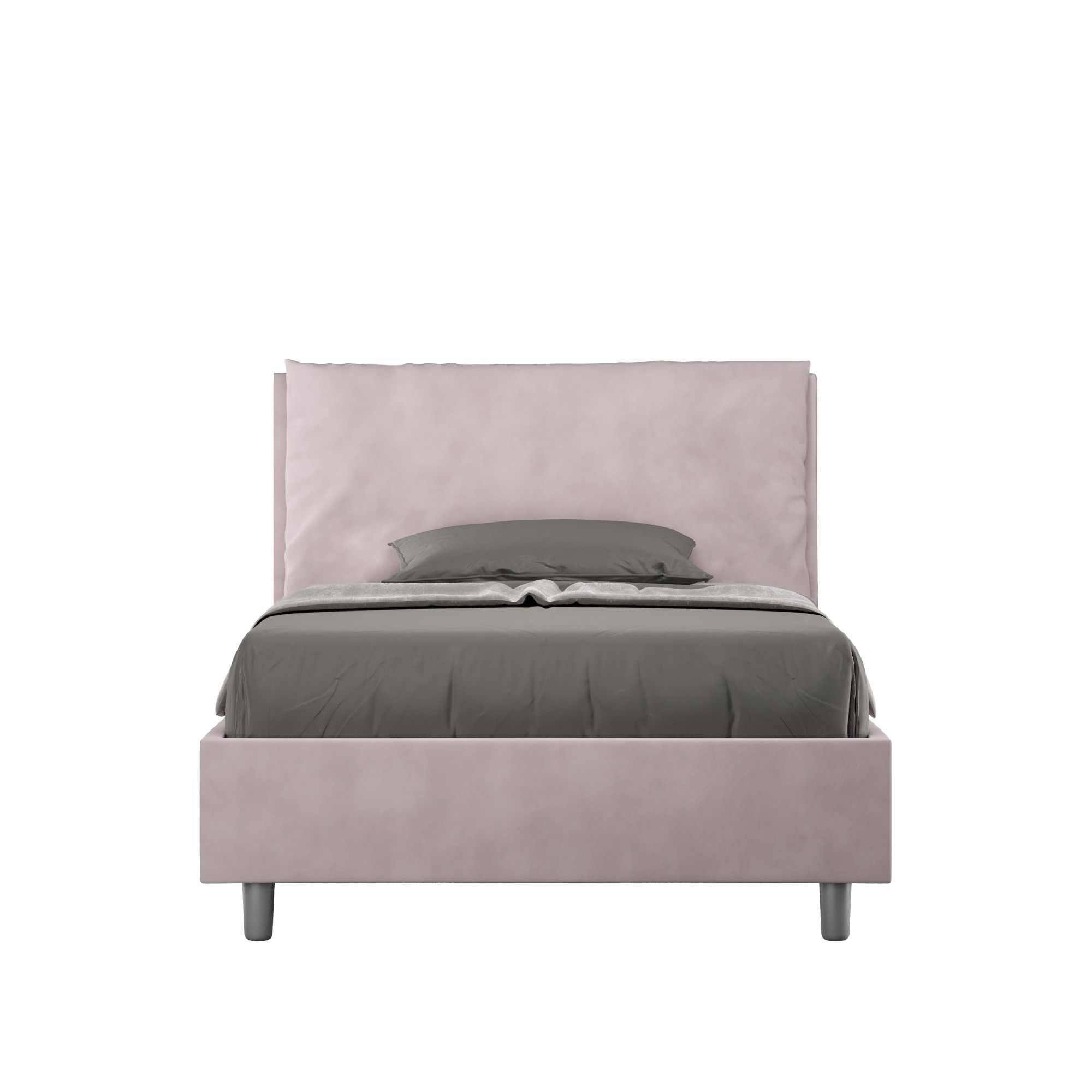 Letto una piazza e mezza 110x190 Antea Large con testata e giroletto imbottiti, rivestimento in microfibra, particolarmente versatile e facilmente abbinabile a qualsiasi stile di arredamento.