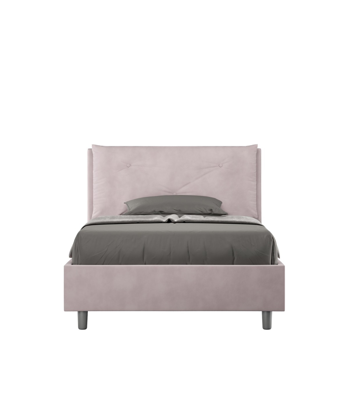 Letto una piazza e mezza 110x190 Appia Large con testata e giroletto imbottiti, rivestimento in microfibra, particolarmente versatile e facilmente abbinabile a qualsiasi stile di arredamento. Il letto una piazza e mezza 110x190 Appia Large è caratterizzato da uno stile elegante e raffinato grazie all'ampia cuscinatura presente sulla testata, è interamente rivestito in microfibra. Un letto che darà un tocco di eleganza alla tua zona notte, senza passare inosservato, grazie alle caratteristiche distintive del suo rivestimento in microfibra. Letto fornito con rete a doghe, predisposto per materasso da 110x190 cm - Materasso non incluso Rivestimento letto completamente sfoderabile. Made in Italy Ingombro letto: L.125 P.202 H.110 cm Altezza piedini: 12 cm Altezza giroletto: 27 cm Altezza rete da terra: 39 cm
