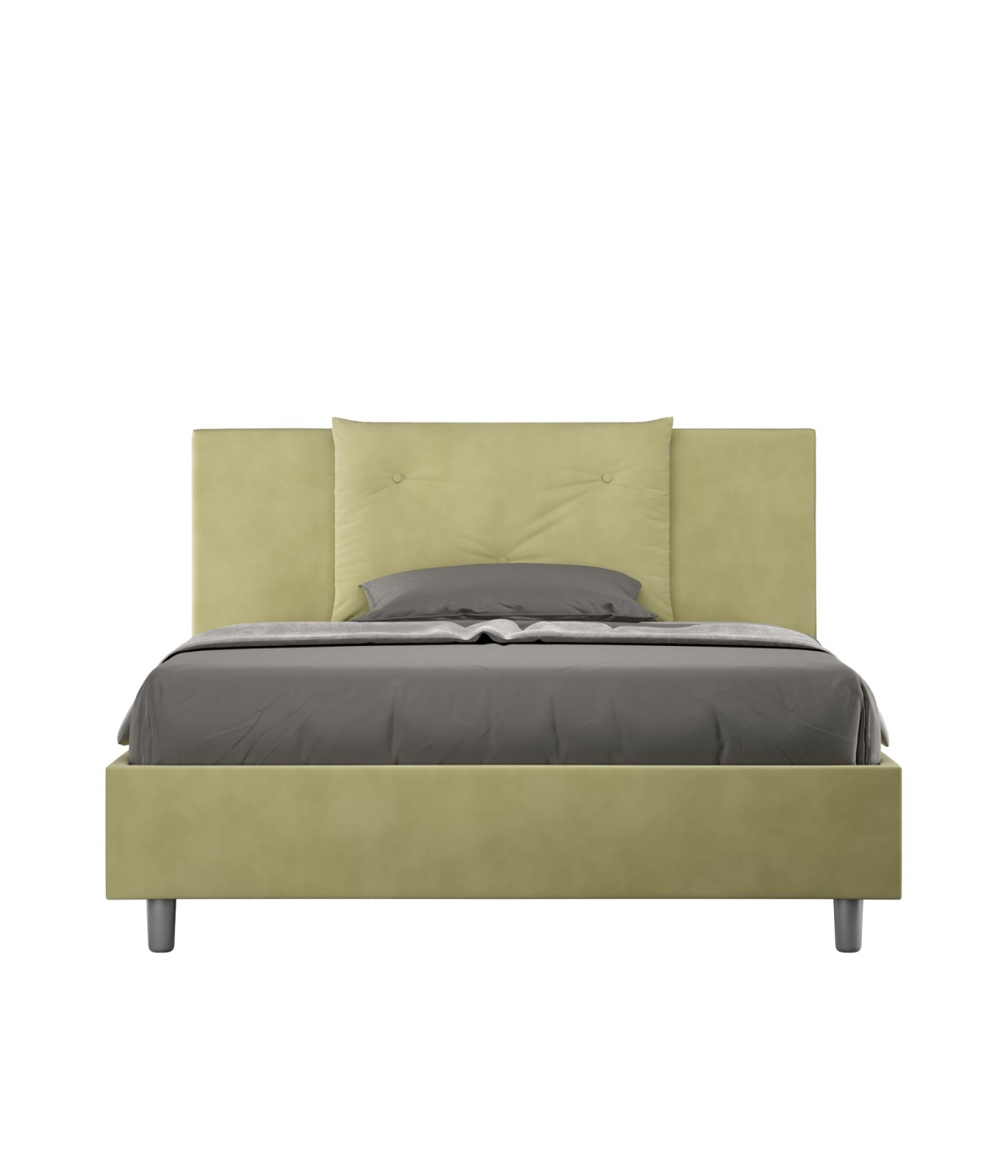 Letto una piazza e mezza 130x200 Appia con testata e giroletto imbottiti, rivestimento in microfibra, particolarmente versatile e facilmente abbinabile a qualsiasi stile di arredamento.