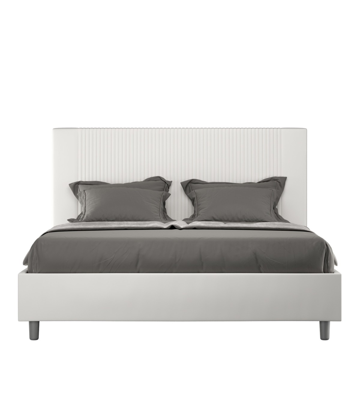 Letto matrimoniale king size 170x210 Goya con testata e giroletto imbottiti, rivestimento in similpelle, particolarmente versatile e facilmente abbinabile a qualsiasi stile di arredamento. Il letto matrimoniale king size 170x210 Goya è caratterizzato da uno stile moderno ed elegante, evidenziato dalla testiera trapuntata rivestita in similpelle. La presenza del materiale in similpelle, oltre a donare alla stanza un'atmosfera accogliente ed invitante, offre la comodità di una pulizia facile e veloce, grazie all'utilizzo di un semplice panno in microfibra. Letto fornito con rete contenitore, predisposto per materasso da 170x210 cm - Materasso non incluso Rivestimento letto non sfoderabile. Made in Italy Ingombro letto: L.185 P.230 H.122 cm Altezza piedini: 12 cm Altezza giroletto: 27 cm Altezza rete da terra: 39 cm Dimensioni interne contenitore: L.173 P.214 H.21 cm