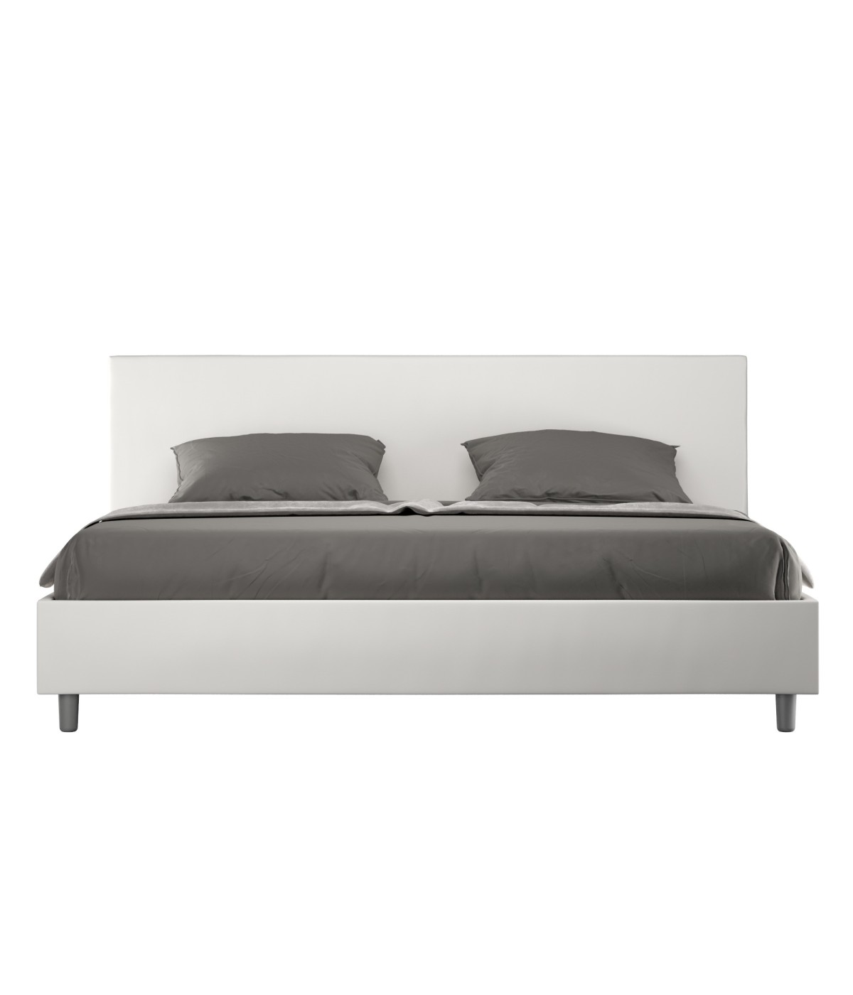 Letto matrimoniale king size 200x210 Adele con testata e giroletto imbottiti, rivestimento in similpelle, particolarmente versatile e facilmente abbinabile a qualsiasi stile di arredamento. Il letto matrimoniale king size 200x210 Adele è caratterizzato da uno stile semplice e raffinato, evidenziato dalla superficie della testata liscia rivestita in similpelle. La presenza del materiale in similpelle, oltre a donare alla stanza un'atmosfera accogliente ed invitante, offre la comodità di una pulizia facile e veloce, grazie all'utilizzo di un semplice panno in microfibra. Letto fornito con rete contenitore, predisposto per materasso da 200x210 cm - Materasso non incluso Rivestimento letto non sfoderabile. Prodotto Ityhome Made in Italy Ingombro letto: L.215 P.222 H.106 cm Altezza piedini: 12 cm Altezza giroletto: 27 cm Altezza rete da terra: 39 cm Dimensioni interne contenitore: L.203 P.214 H.21 cm