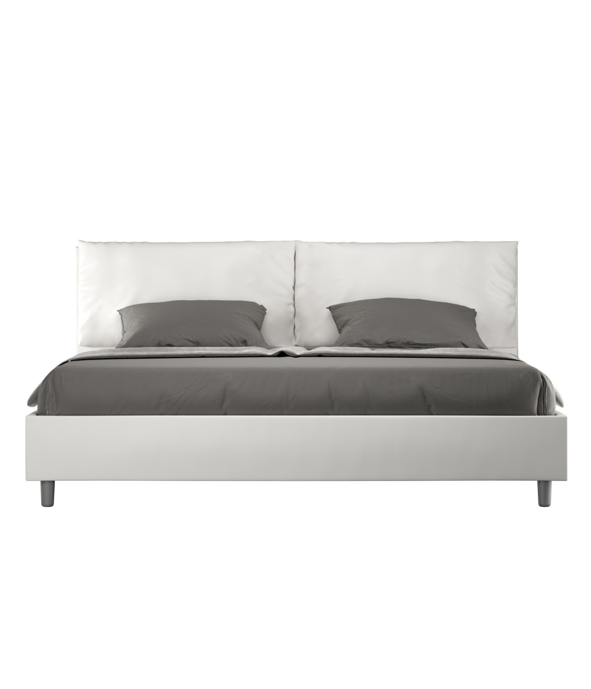 Letto matrimoniale king size 200x210 Antea Large con testata e giroletto imbottiti, rivestimento in similpelle, particolarmente versatile e facilmente abbinabile a qualsiasi stile di arredamento.