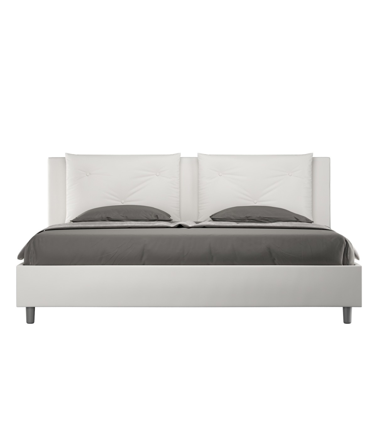 Letto matrimoniale king size 200x210 Appia con testata e giroletto imbottiti, rivestimento in similpelle, particolarmente versatile e facilmente abbinabile a qualsiasi stile di arredamento.