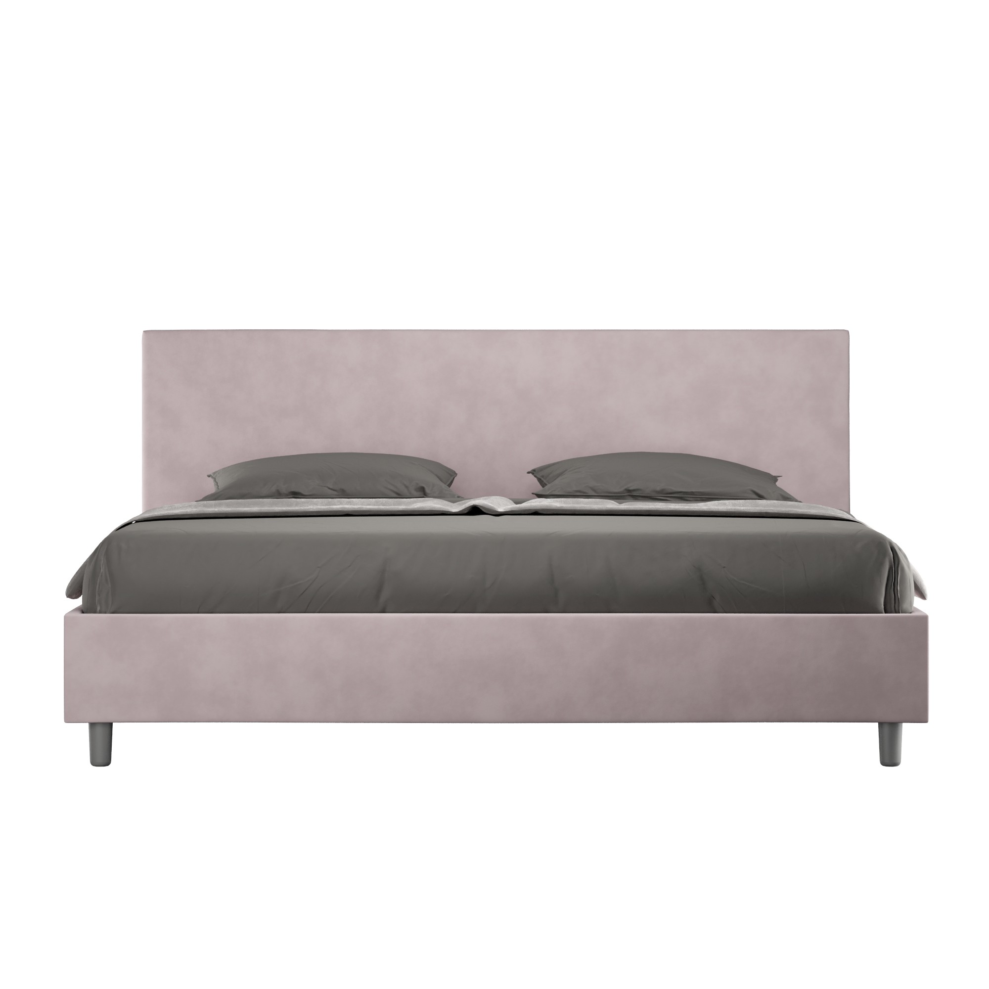 Letto matrimoniale king size 190x200 Adele con testata e giroletto imbottiti, rivestimento in microfibra, particolarmente versatile e facilmente abbinabile a qualsiasi stile di arredamento.