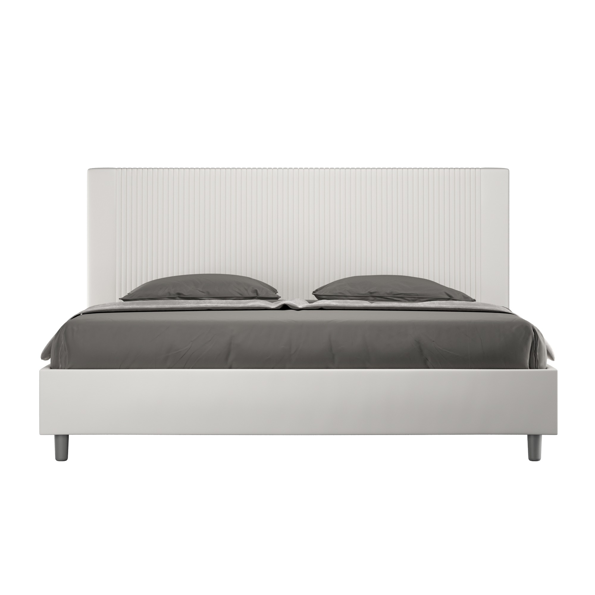 Letto matrimoniale king size 190x200 Goya con testata e giroletto imbottiti, rivestimento in similpelle, particolarmente versatile e facilmente abbinabile a qualsiasi stile di arredamento.