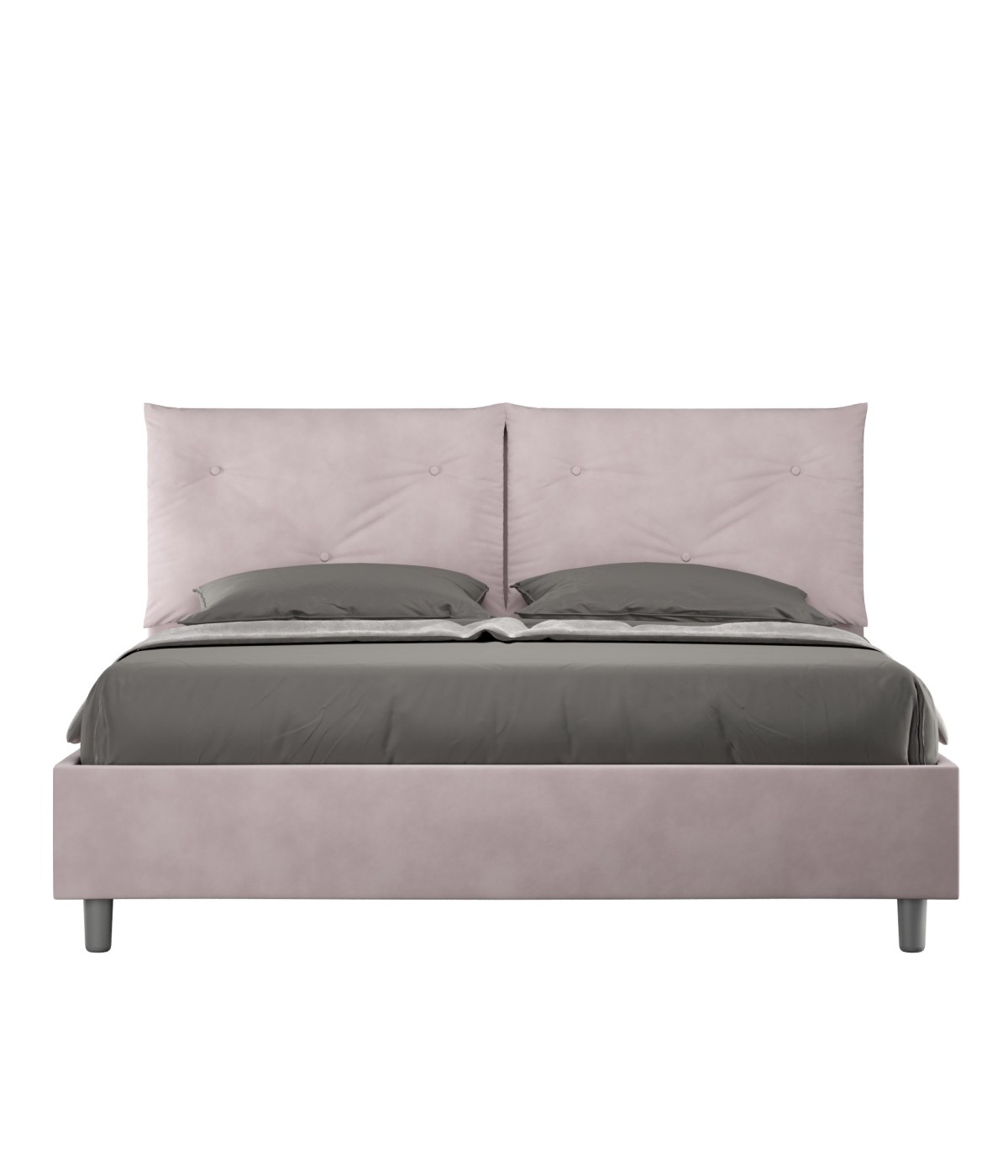 Il letto queen size 150x190 Appia Large è caratterizzato da uno stile elegante e raffinato grazie all'ampia cuscinatura presente sulla testata, è interamente rivestito in microfibra.