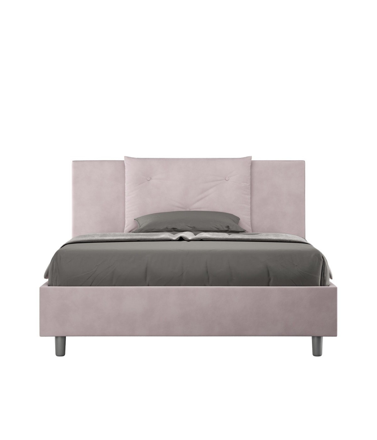 Letto queen size 150x210 Appia con testata e giroletto imbottiti, rivestimento in microfibra, particolarmente versatile e facilmente abbinabile a qualsiasi stile di arredamento.