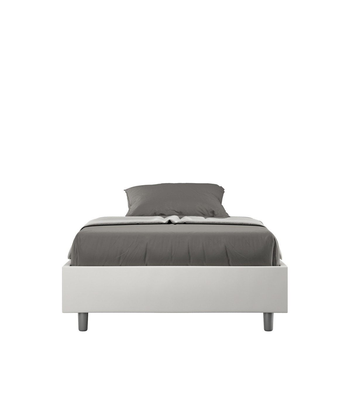 Letto alla francese 140x200 senza testiera Azelia con giroletto imbottito, rivestimento in similpelle, particolarmente versatile e facilmente abbinabile a qualsiasi stile di arredamento. Il letto alla francese 140x200 senza testiera Azelia è caratterizzato da uno stile semplice e lineare che si accentua per la mancanza della testiera. La presenza del materiale in similpelle, oltre a donare alla stanza un'atmosfera accogliente ed invitante, offre la comodità di una pulizia facile e veloce, grazie all'utilizzo di un semplice panno in microfibra. Letto fornito con rete contenitore, predisposto per materasso da 140x200 cm - Materasso non incluso Rivestimento letto non sfoderabile. Made in Italy Ingombro letto: L.152 P.212 H.39 cm Altezza piedini: 12 cm Altezza giroletto: 27 cm Altezza rete da terra: 39 cm Dimensioni interne contenitore: L.143 P.204 H.21 cm
