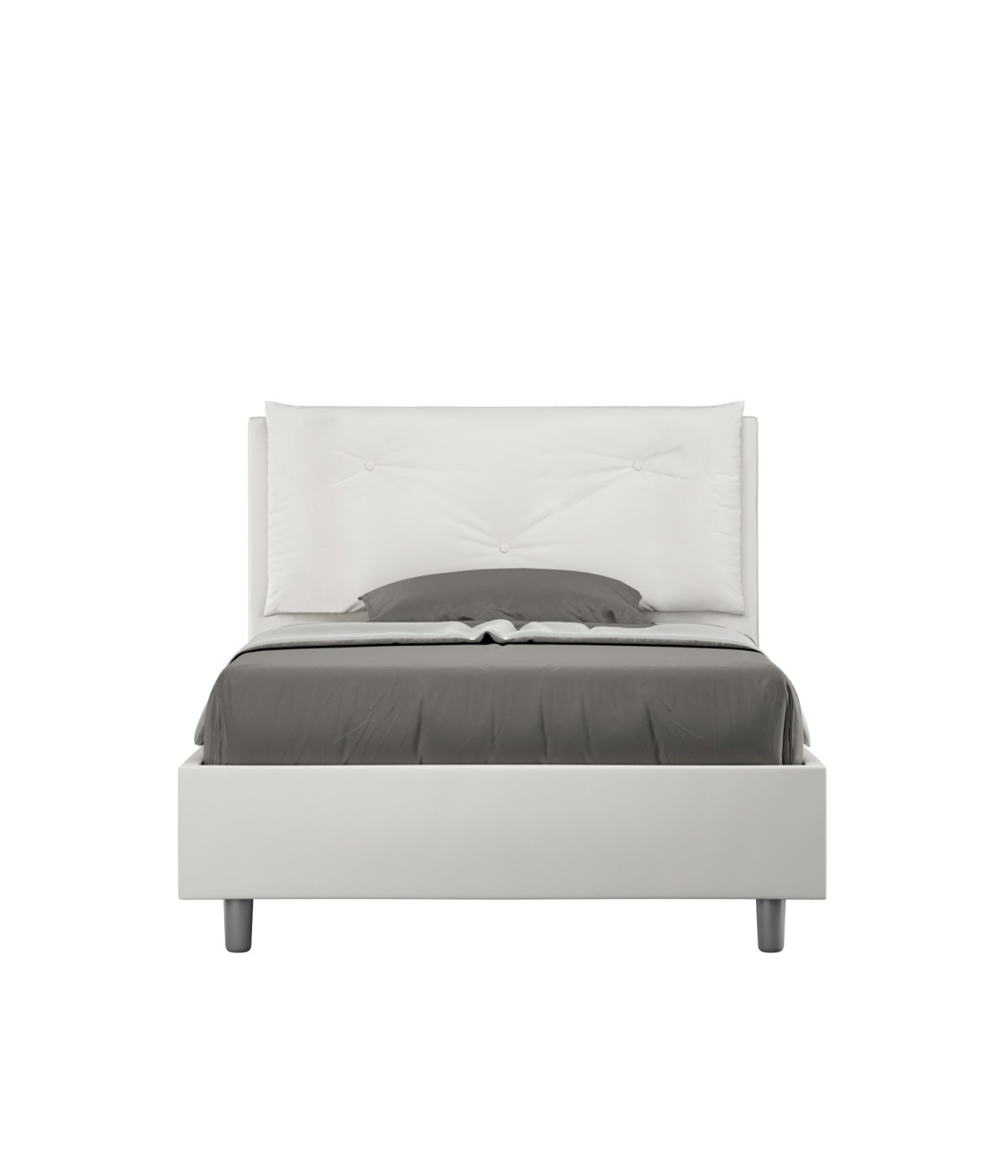Letto una piazza e mezza 120x210 Appia Large con testata e giroletto imbottiti, rivestimento in similpelle, particolarmente versatile e facilmente abbinabile a qualsiasi stile di arredamento.