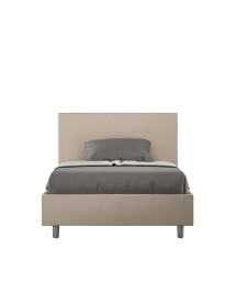 Letto una piazza e mezza 120x190 Agueda con testata e giroletto imbottiti, rivestimento in similpelle, particolarmente versatile e facilmente abbinabile a qualsiasi stile di arredamento.