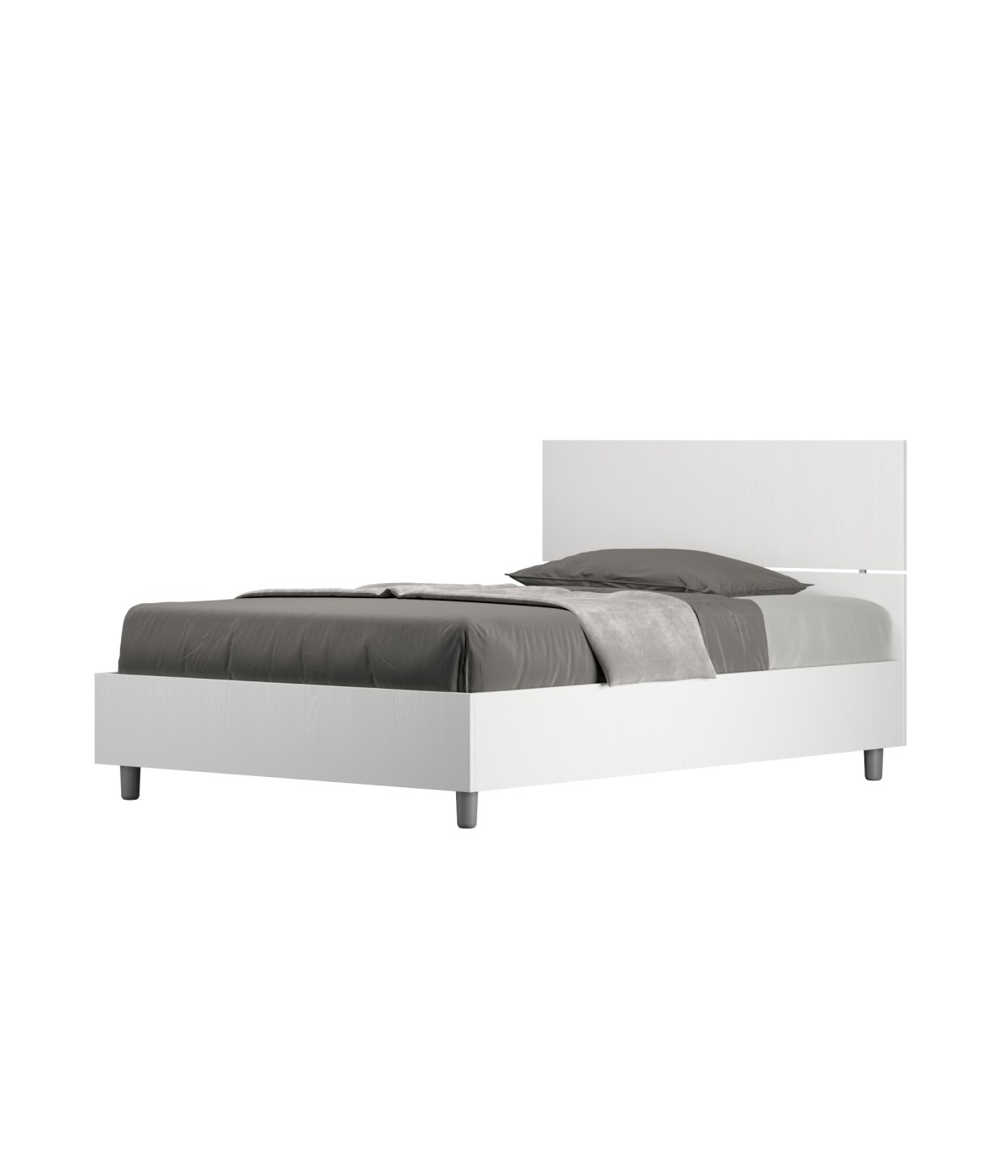 Letto una piazza e mezza 120x200 Demas con testata e giroletto in pannelli di nobilitato, particolarmente versatile e facilmente abbinabile a qualsiasi stile di arredamento.