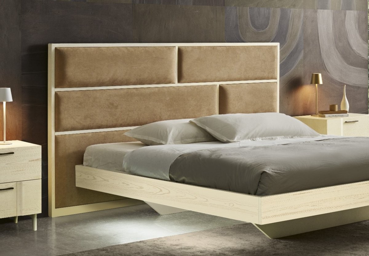 Letto matrimoniale imbottito tessuto legno rovere 205X205X120