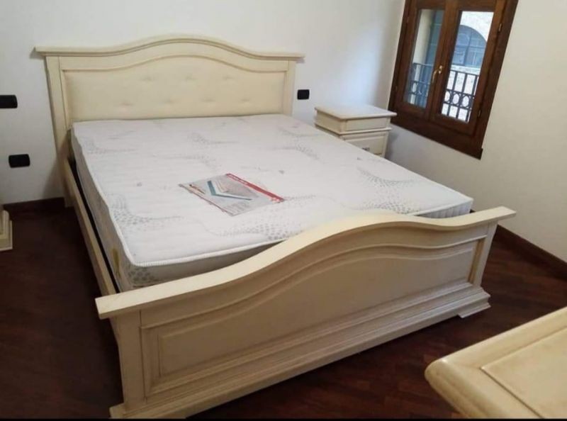 Letto matrimoniale legno shabby avorio anticato testata ecopelle beige 187X211X117