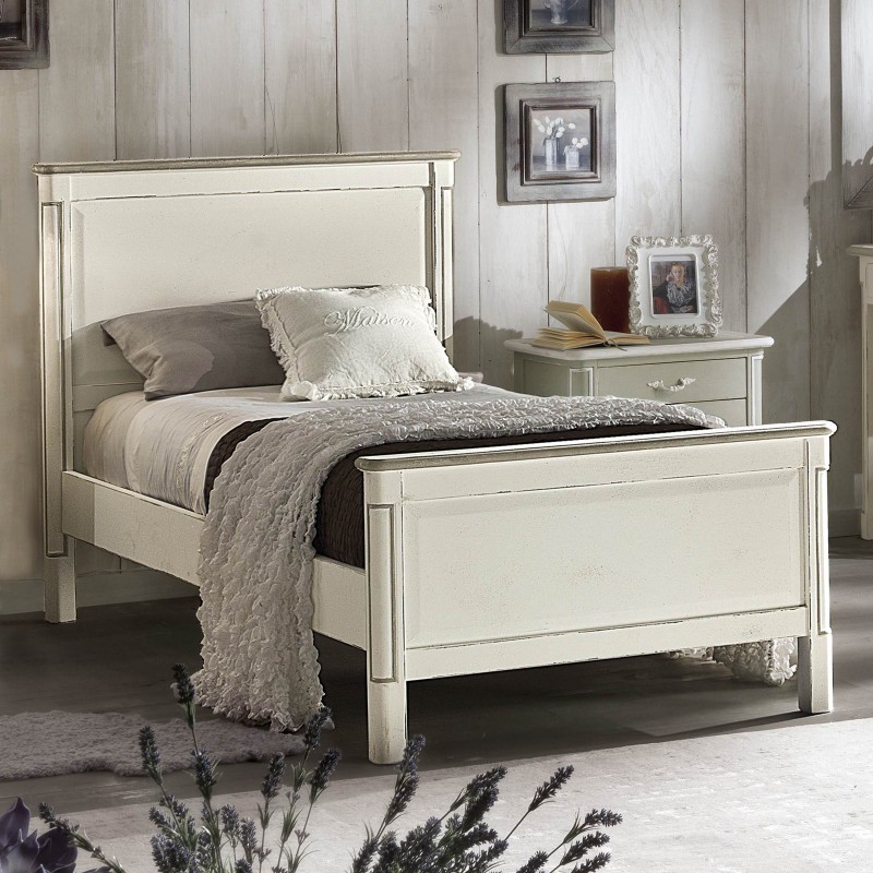 Letto singolo legno shabby chic bianco grigio 107x214x110