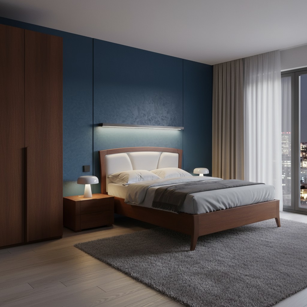 • Letto matrimoniale legno ecopelle con contenitore noce bassano 184x210x120