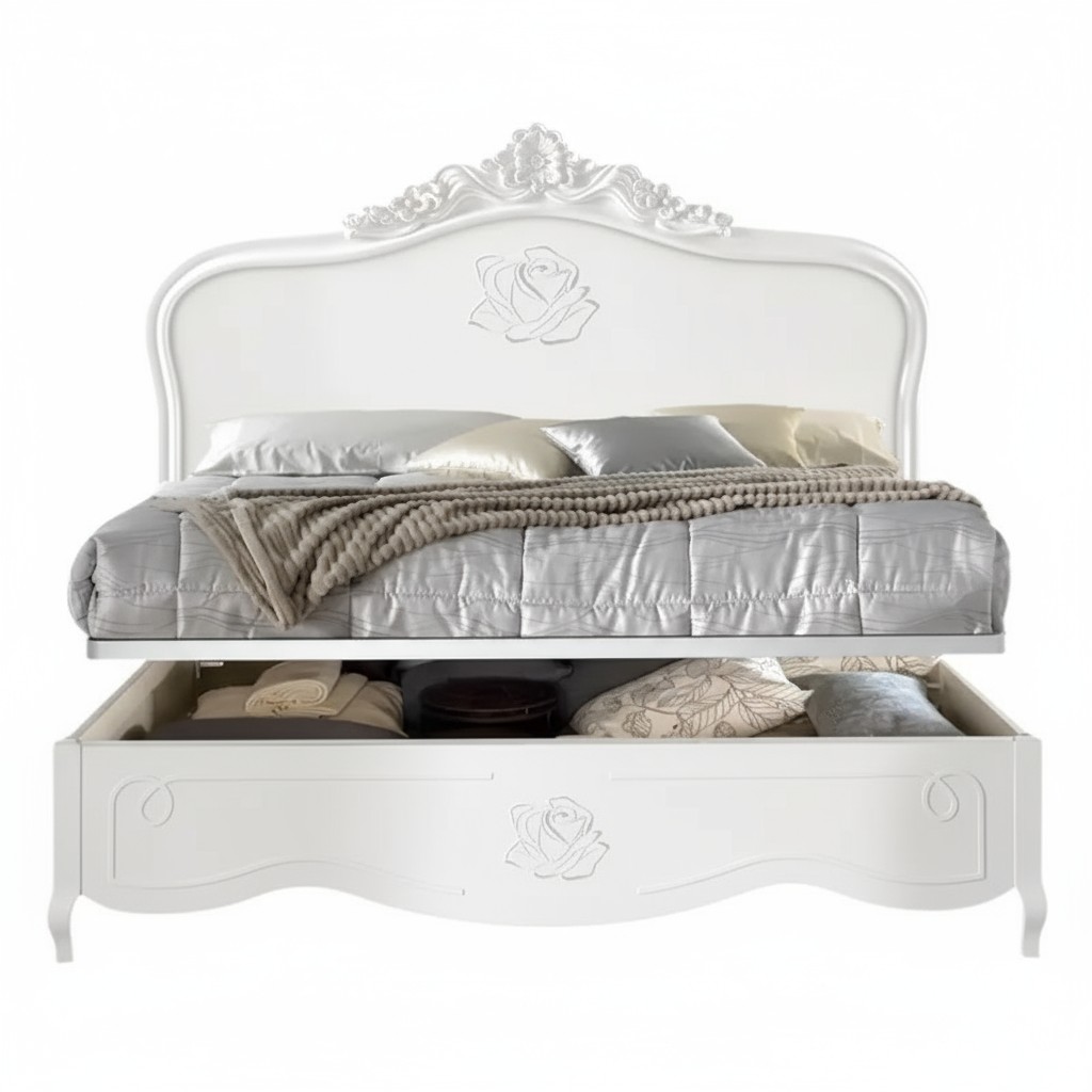 Letto matrimoniale barocco con contenitore decoro rosa 182x212x156 (2134)