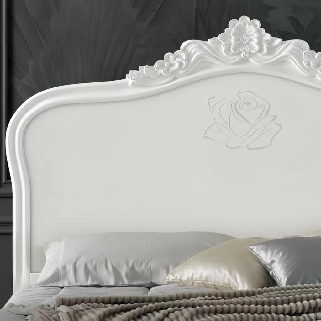 Letto matrimoniale barocco rosa intagliata bianco 182x212x156 (2134)