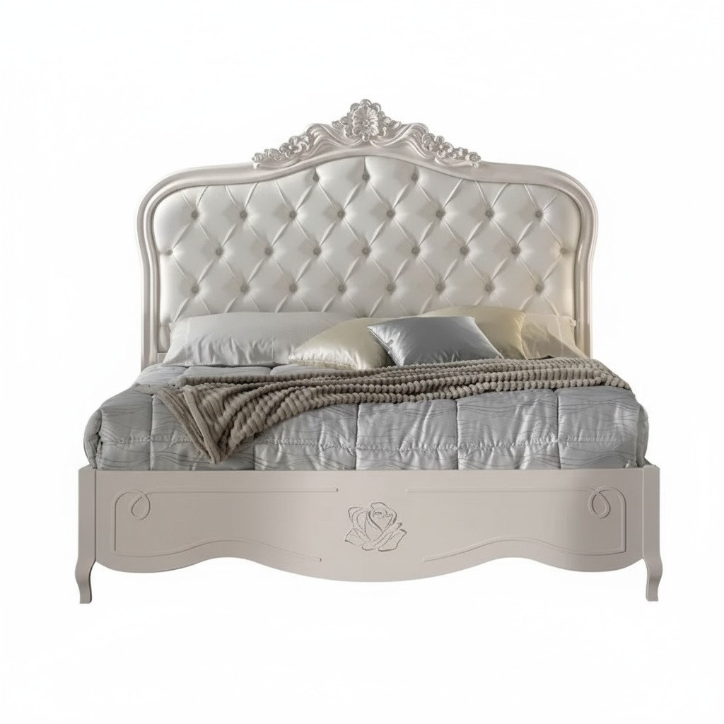 Letto matrimoniale barocco imbottito Legno Bianco 182x212x156 (2135)