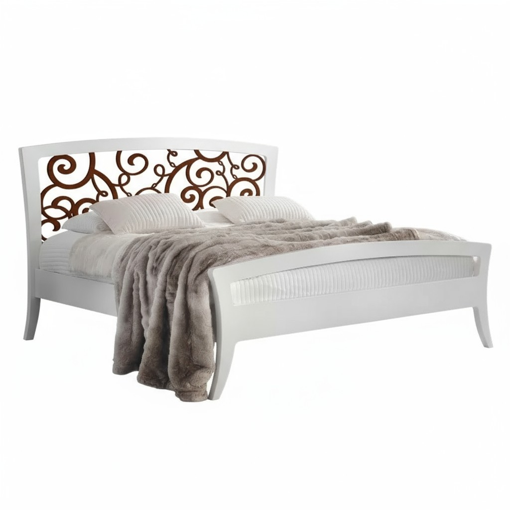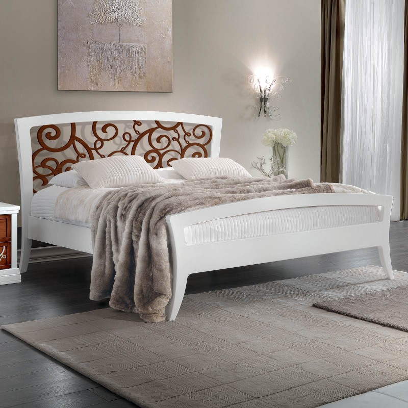 Letto shabby traforato legno bicolore bianco noce 184x210x120