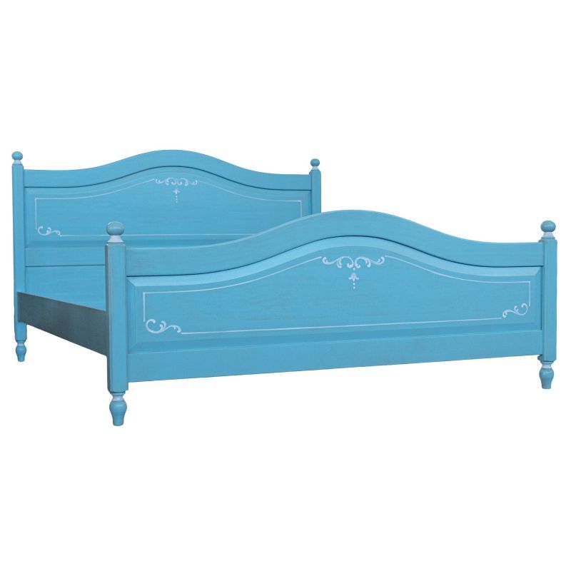 Letto matrimoniale costruito in legno adatto per trascorrere una notte rivitalizzante. Trova facilmente posto nella camera grazie alle sue linee semplici ma uniche nel suo genere con la sua particolare laccatura azzurro anticato, accompagnata da decori provenzali dipinti a mano, dando un tocco a un' atmosfera dallo stile shabby chic .
