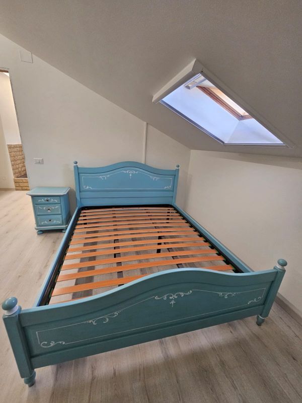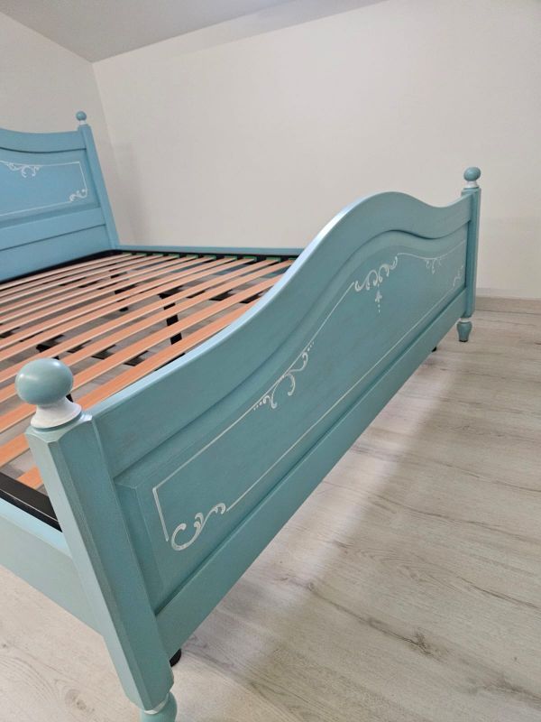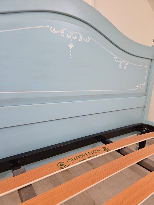 Letto matrimoniale shabby azzurro anticato provenzale 175x212X112